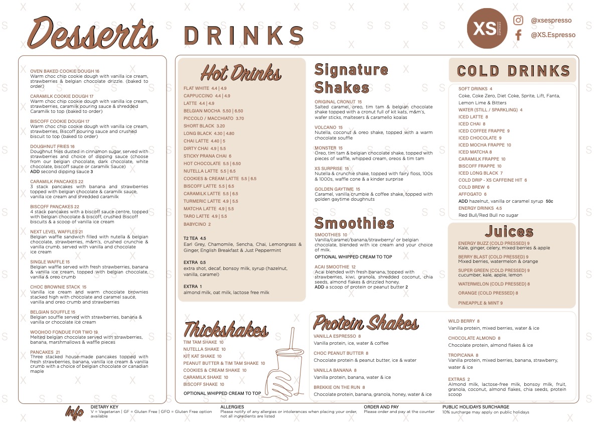 XS Espresso Bennetts Green Menu